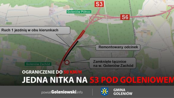 Jedna nitka na S3 pod Goleniowem. Ograniczenie do 50 km/h