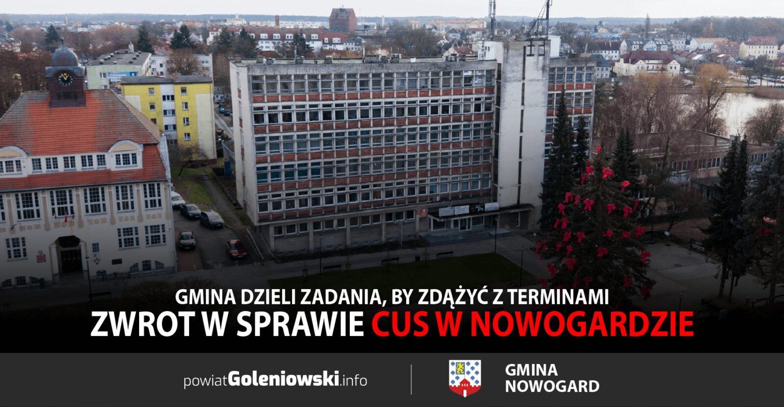 Po nieudanym wrześniowym podejściu do wyłonienia wykonawcy Centrum Usług Społecznych przy Placu Wolności 9 (były hotel CISY), Gmina Nowogard zmienia taktykę. Zamiast jednego dużego wykonawcy, zadanie zostało podzielone na mniejsze etapy. Urzędnicy liczą, że dzięki temu uda się szybciej uruchomić parter budynku, a remont drugiego piętra znajdzie chętnego wykonawcę dzięki obniżonym wymaganiom.
