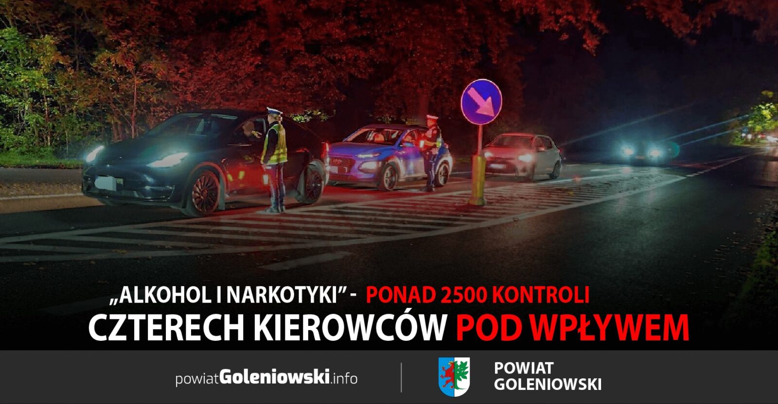 W piątkowy wieczór policjanci z Komendy Powiatowej Policji w Goleniowie przeprowadzili wzmożone działania w ramach akcji „Alkohol i Narkotyki”. Ich celem było wyeliminowanie z ruchu drogowego osób, które prowadzą pojazdy po spożyciu alkoholu lub środków odurzających. W trakcie akcji funkcjonariusze skontrolowali 2526 kierujących na terenie całego powiatu goleniowskiego.