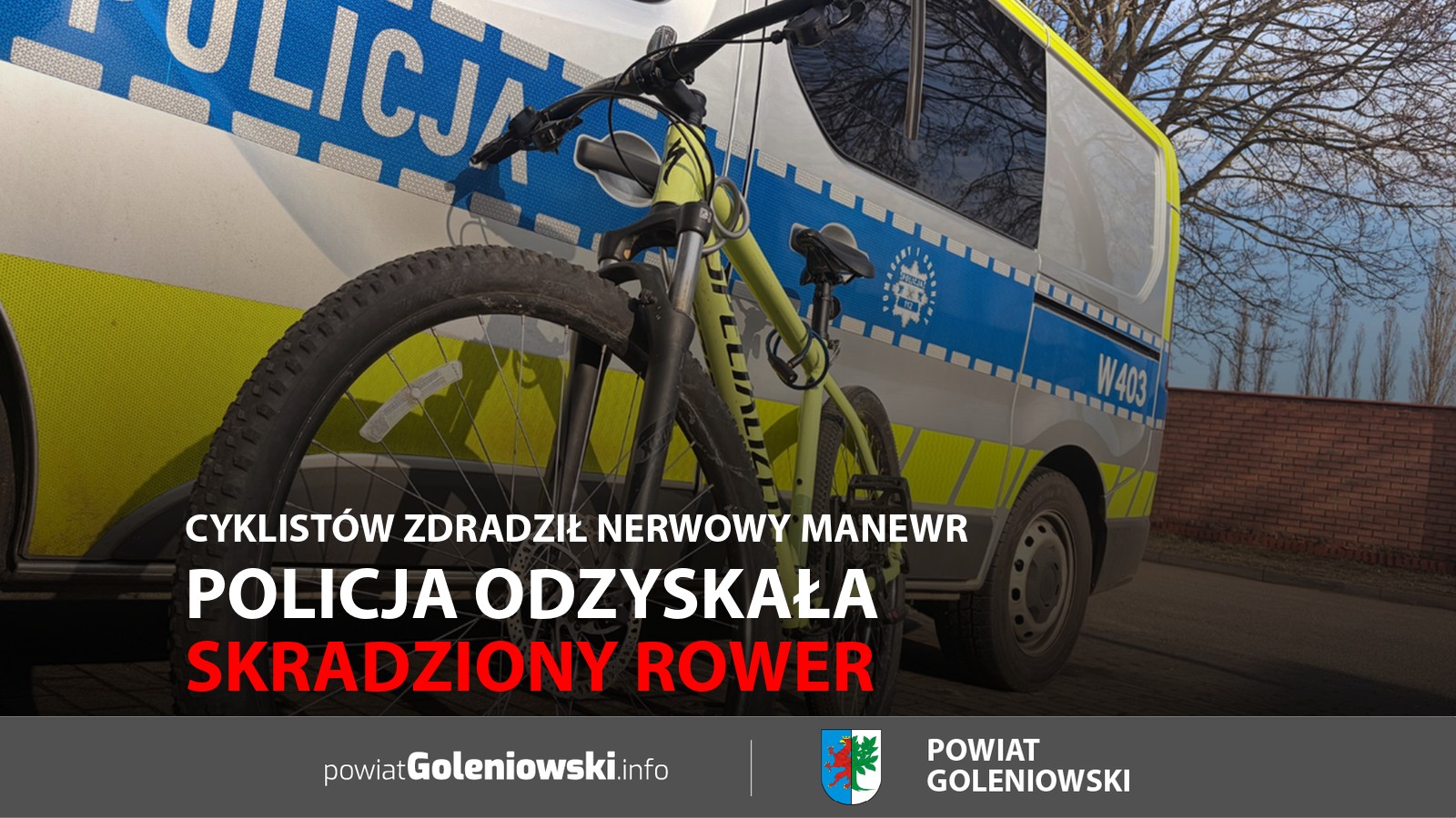 Goleniowscy policjanci odzyskali skradziony rower warty ponad tysiąc złotych. Jednoślad zniknął na początku marca w Nowogardzie, ale ostatecznie wyśledzono go na ulicach Goleniowa.